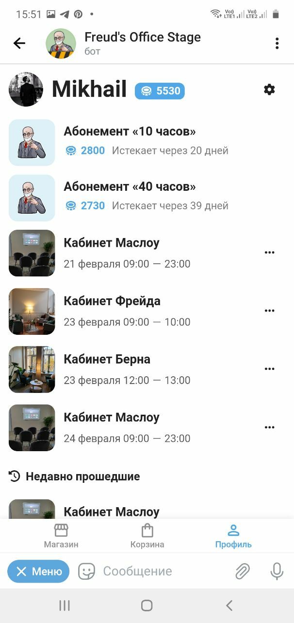 • В «Личном кабинете» Вы легко найдете все предстоящие бронирования, а в сообщениях Telegram-бота легко отследить все прошедшие.